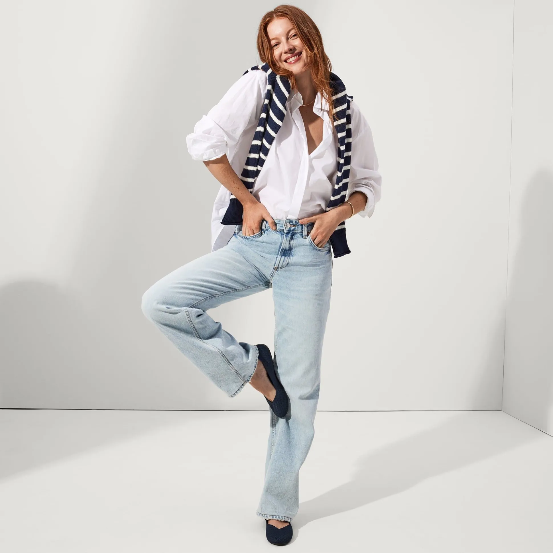 The Wardrobe Staple That Does It All. Endlessly Versatile, Washable And Comfortable, Our Classic Flat In A Navy Herringbone Pattern Is Made To Last Seasons.