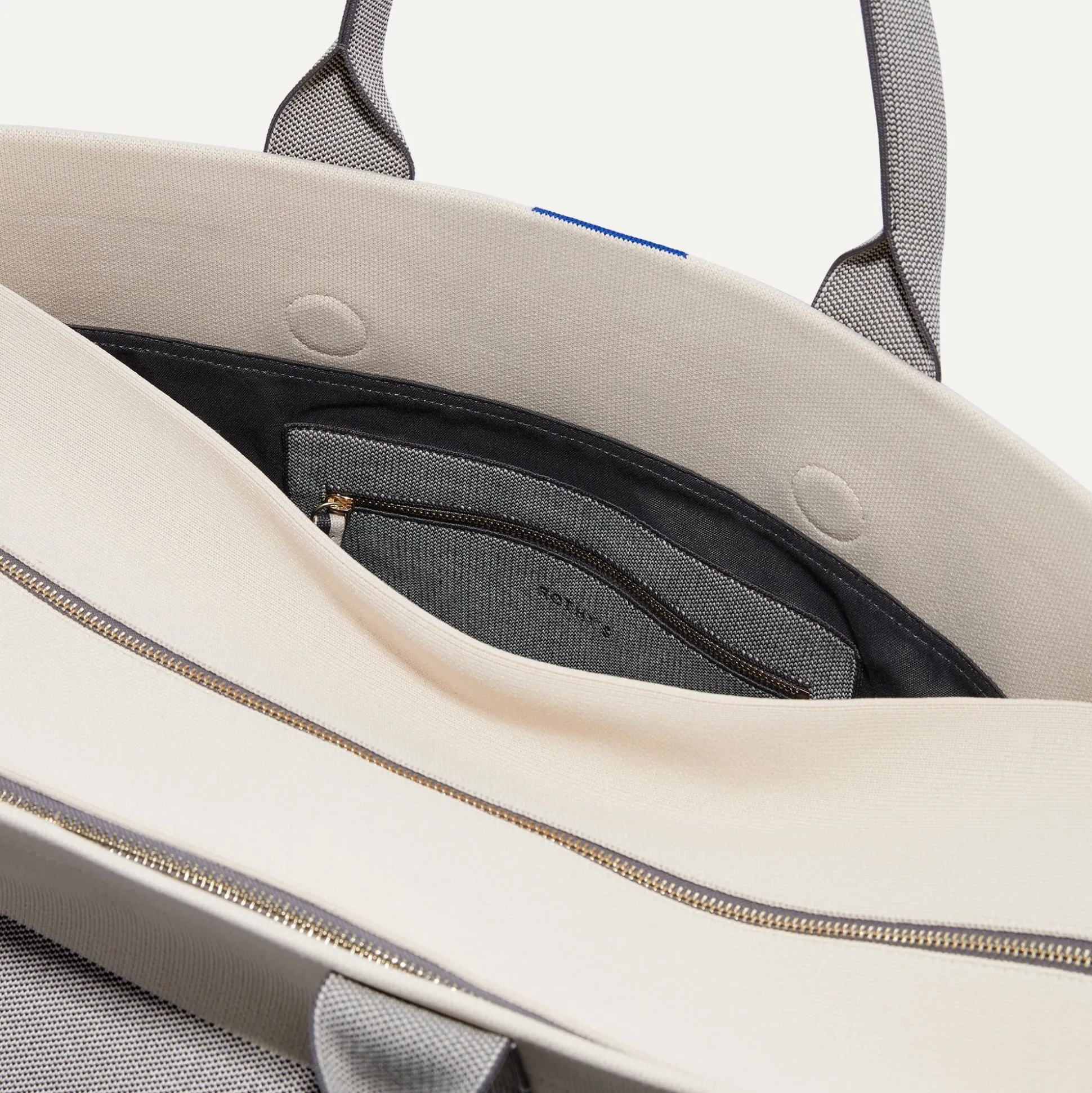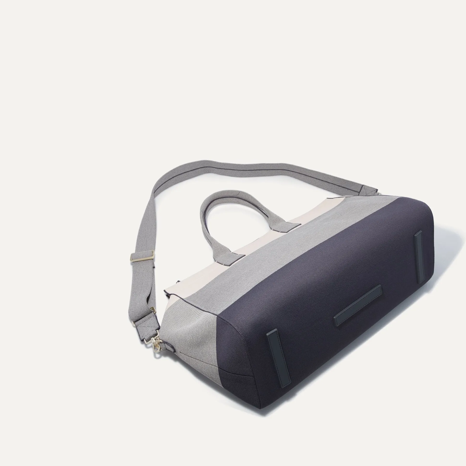 Our Durable, Spacious Travel Bag In Ivory And Shades Of Grey Is Made For Getaways—With Three Roomy Compartments, Comfortable Top Handles And An Adjustable, Detachable Strap. Bonus: It Fits In The Overhead Bin Of Most Major Airlines.