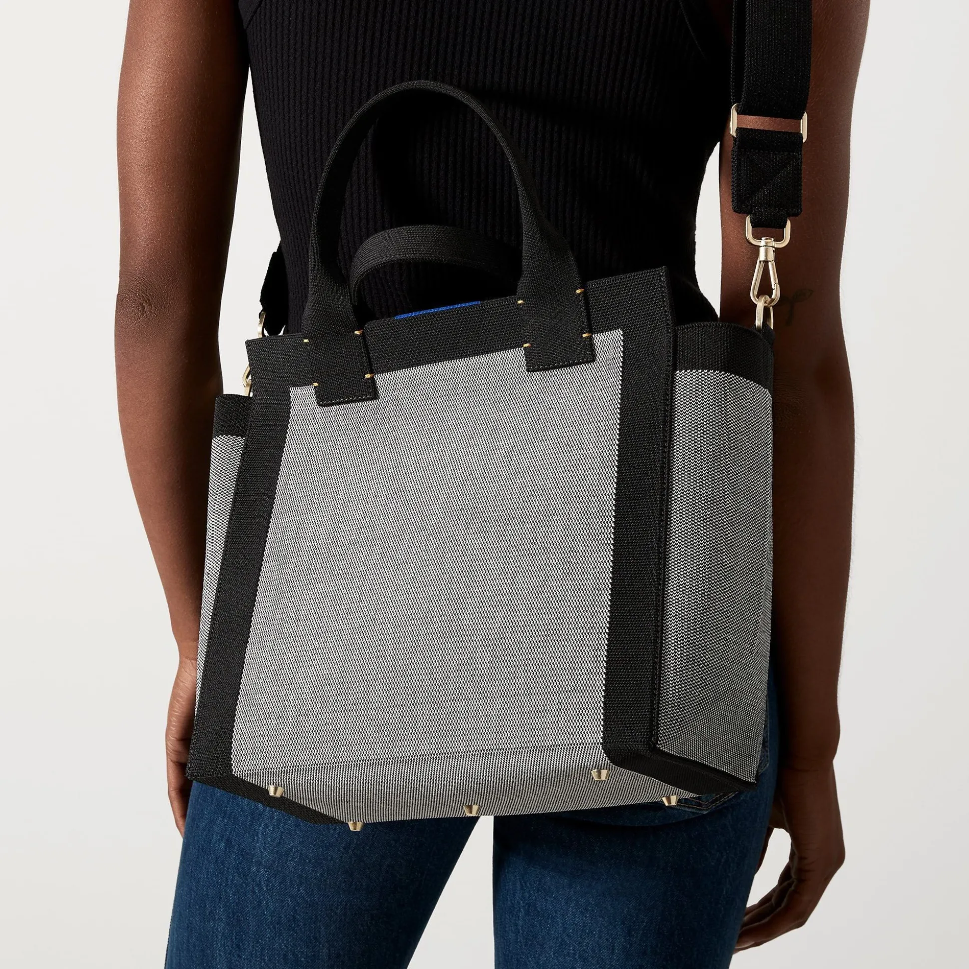 One Bag, Countless Possibilities. With A Detachable Strap And Durable Top Handles, Our Washable Handbag In Soft Grey And Black Can Be Worn As A Crossbody Or Over The Shoulder. Plus, It’s Made With Marine Plastic.