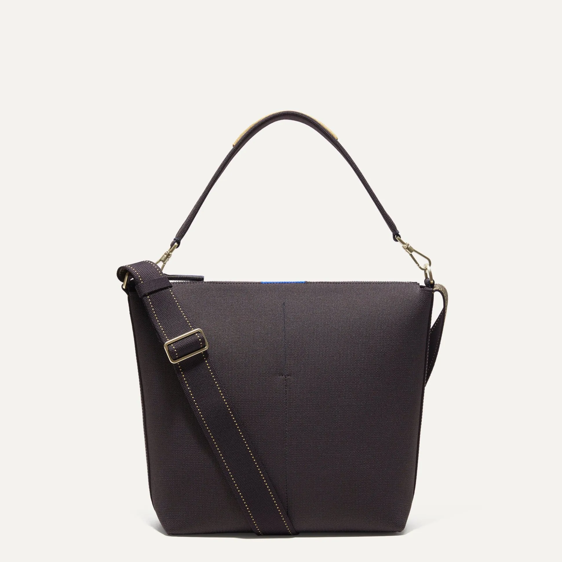 Perfect For The Workday And Beyond, The Mini Zip Bucket Is A Smaller Take On Our Classic Bucket Bag. A Functional Style Made To Move, This Design In An Almost Black, Deep Blue Hue Secures Your Essentials With A Top Zipper And Three Interior Pockets—And Adapts To Your Plans With Its Detachable Top Handle. Plus, It’s Made With Marine Plastic.