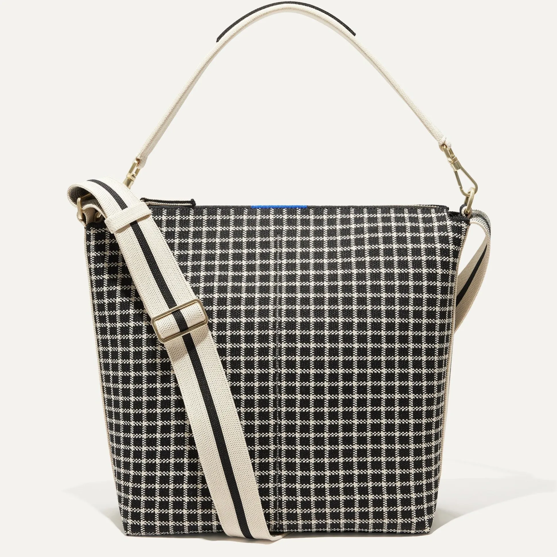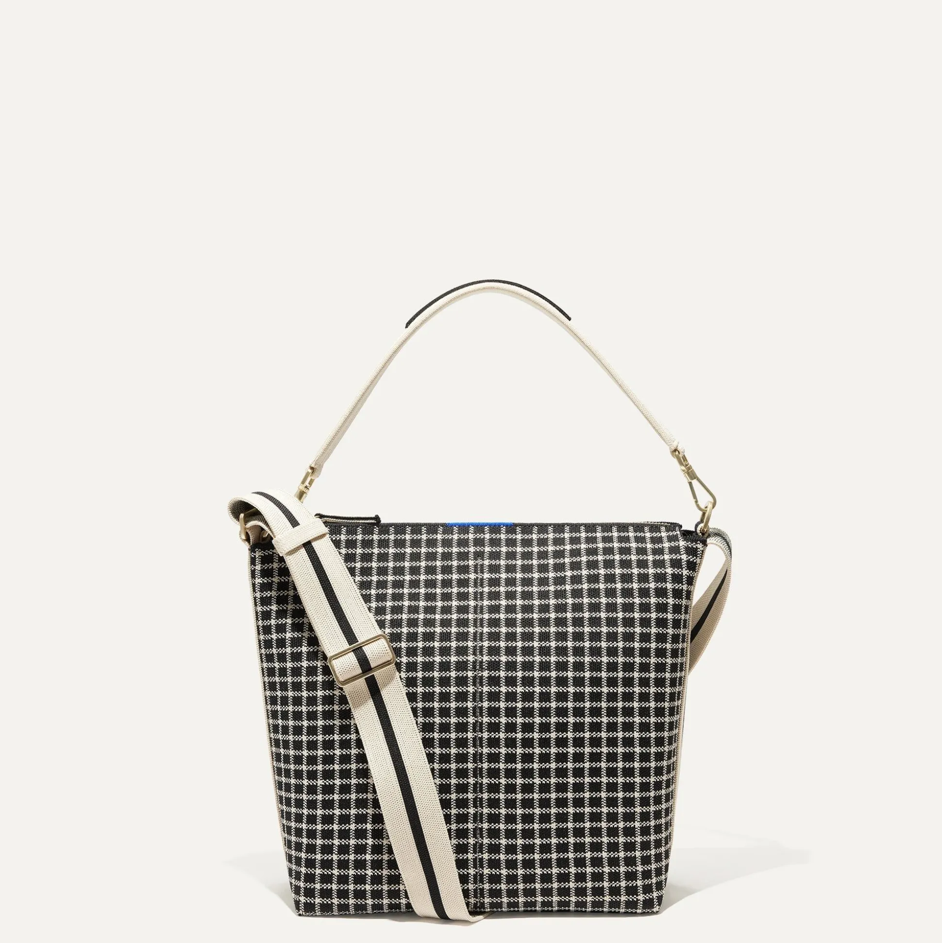 Perfect For The Workday And Beyond, The Mini Zip Bucket Is A Smaller Take On Our Classic Bucket Bag. A Functional Style Made To Move, This Design In A Black And Cream Windowpane Pattern Secures Your Essentials With A Top Zipper And Three Interior Pockets—And Adapts To Your Plans With Its Detachable Top Handle. Plus, It’s Made With Marine Plastic.