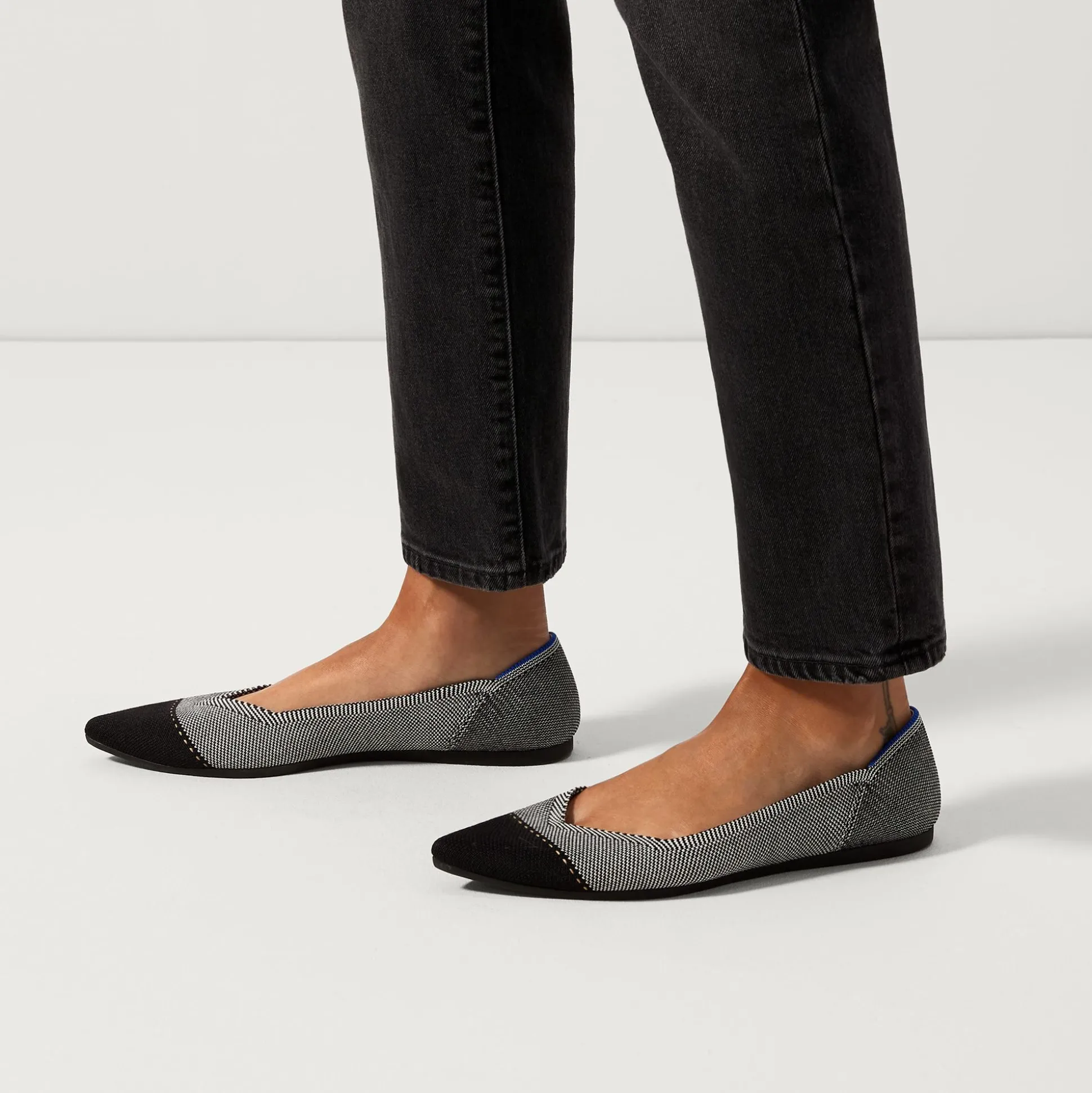 The One Shoe That Elevates Any Outfit—Anytime. Our Sleek Pointed-Toe Flat In Misty Grey And Black Combines Exceptional Comfort With Versatile, Washable Style. And It’s Knit From Plastic Bottles.