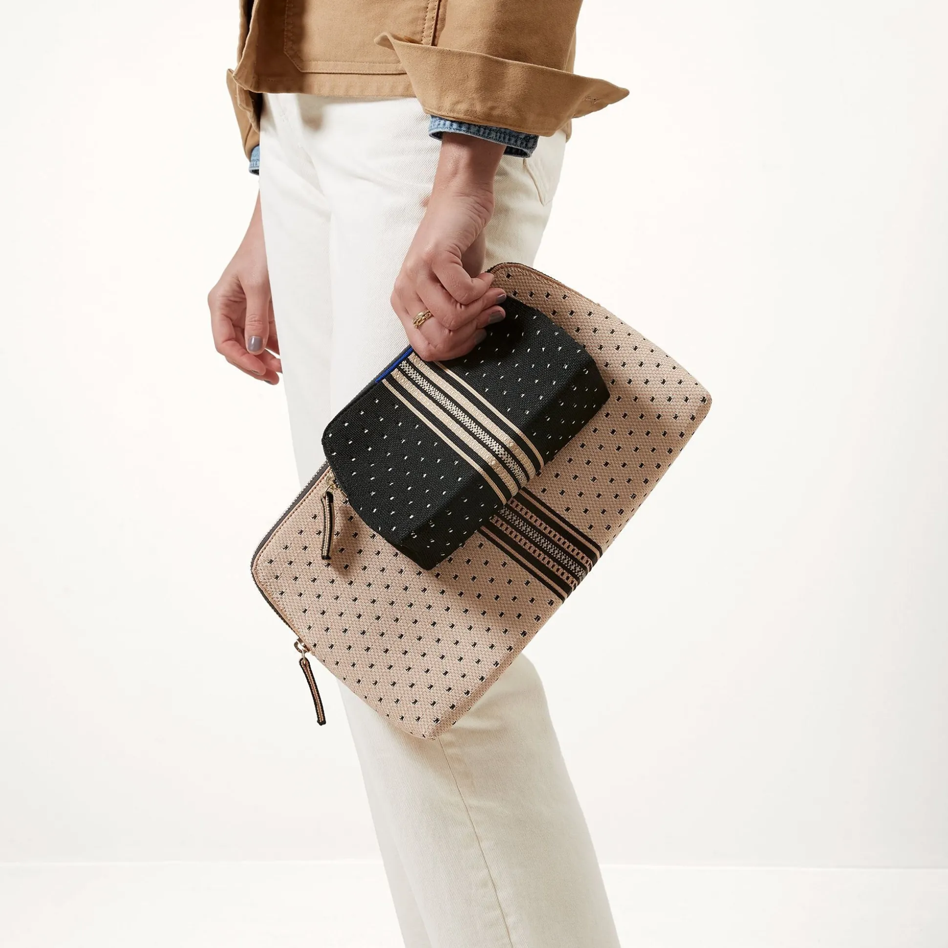 A True Dynamic Duo, Our Versatile Travel Set In Chic Beige And Black Comes With Two Different-Sized Pouches To Pack Your Toiletries, Makeup And More. Plus, It’s 100% Washable—So You Never Need To Worry About Spills.
