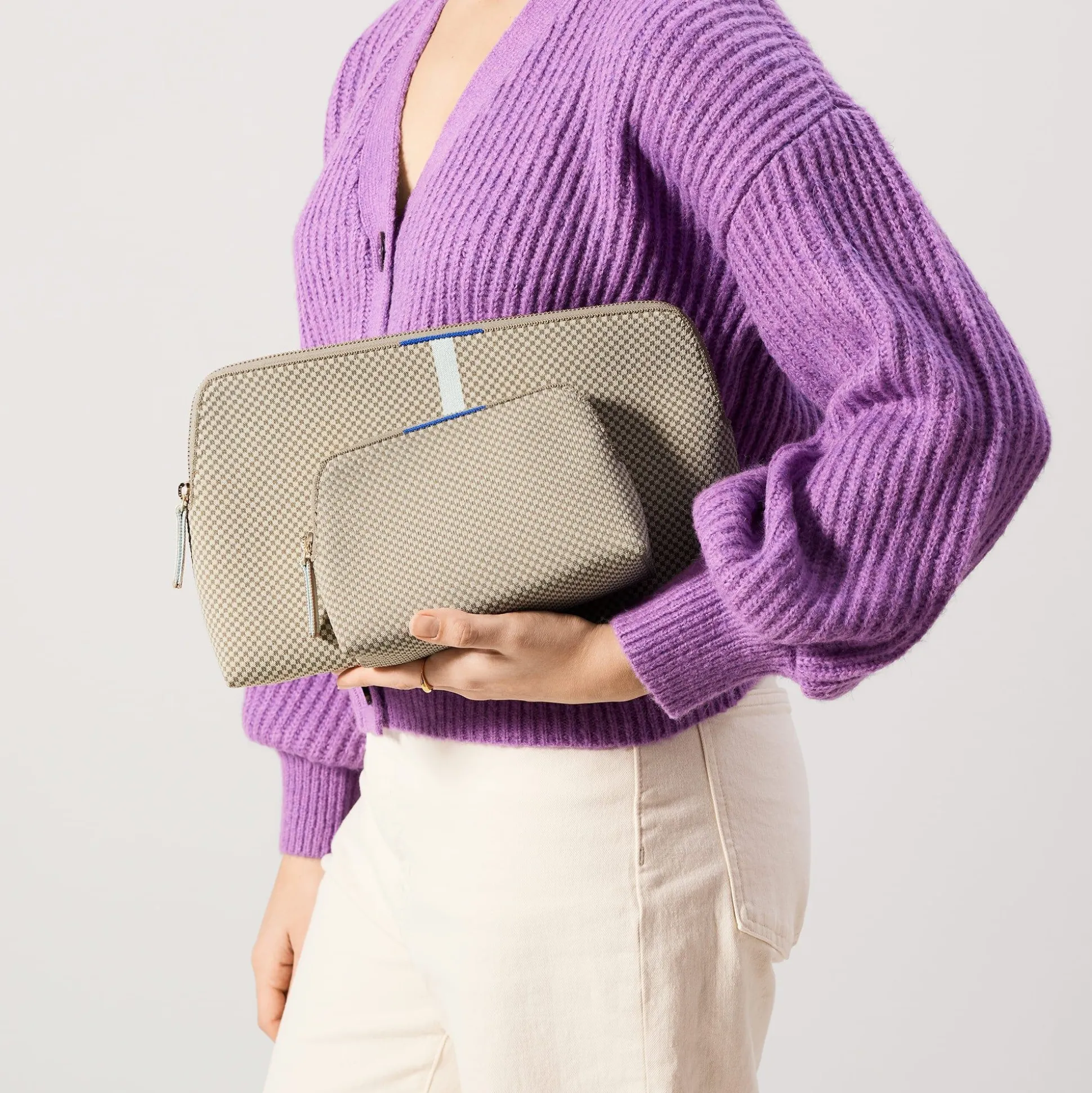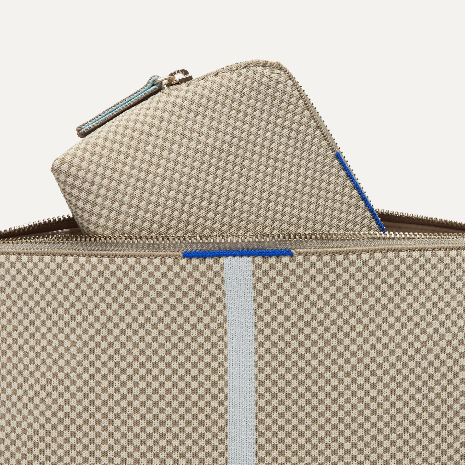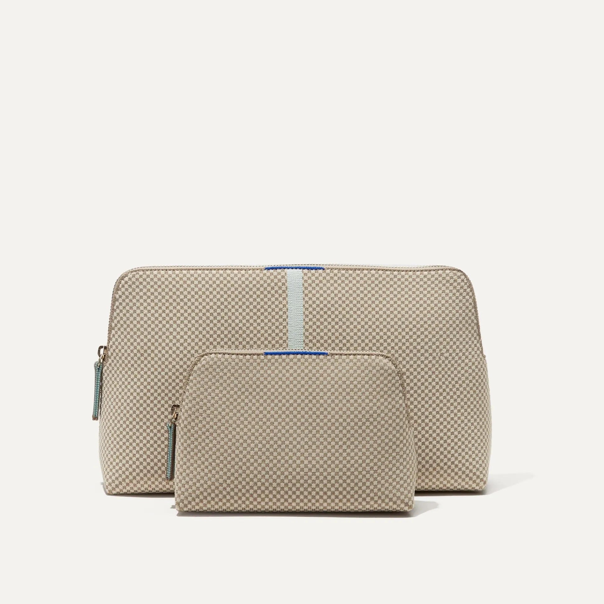 A True Dynamic Duo, Our Versatile Travel Set In A Brown And Cream Check Pattern With Minty Blue Accents Comes With Two Different-Sized Pouches To Pack Your Toiletries, Makeup And More. Plus, It’s 100% Washable—So You Never Need To Worry About Spills.
